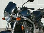 Note: The Holeshot Fly Screen will fit on almost any bike with a standard 7 inch glass headlight lens. Our stainless mounting hardware requires that the headlight bucket mounting ears must measure 7 3/4 in. - 8 1/2 in. across from inside to inside surface for proper installation. A certain amount of gauge clearance is also necessary. Updated Holeshot Fly Screen will fit most standard models including every year model SV-650/1000.