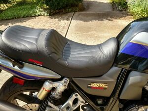 Dale has teamed up with the legendary Mike Corbin to design his very own signature series Holeshot ZRX 1100/ 1200 seat. Dale's shape offers about a 1" inch lower seating position, with the bucket in just the right spot for added security, back support and comfort. The front section near the tank is shaped up hill just enough to keep you planted in the saddle in the proper place and the sides are tapered off just enough to eliminate any pressure points on the inner thighs.This shape also allows the more aggressive rider to still slide off nicely side to side in the twisties. The ZRX Holeshot/Corbin seat offers the rider a lower center of gravity for better handling.